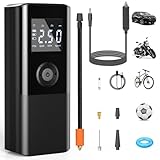 - 4 MODOS DE INFLADO Y UNIDADES DE PRESIÓN: Con un solo botón, puede cambiar rápidamente entre 4 modos (coche, moto, bicicleta y balón) y 4 valores de unidad (PSI, kPa, BAR, KG/CM) para la compresor coche. Además, el hinchador electrico bicicleta incluye tres boquillas adicionales: el adaptador de válvula Schrader, el cono de boquilla de aire y el adaptador de válvula de aguja. La boquilla incorporada permite que el compresor de aire de 12v infle automóviles, todoterrenos, motocicletas, bicicletas, balones y mucho más, satisfaciendo una gran variedad de necesidades